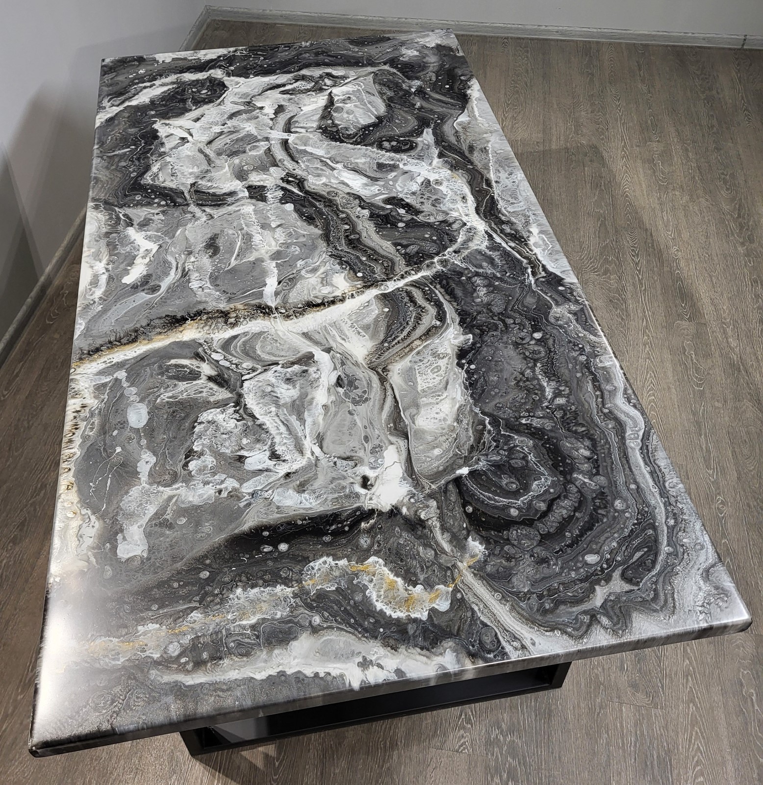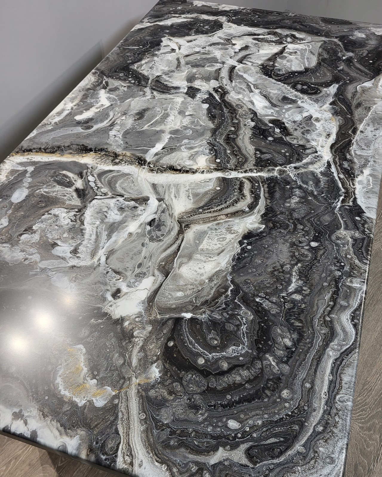 Стильний стіл, який виглядає як витвір сучасного мистецтва. Ми використали надійну основу з ДСП та перетворили її на унікальну дизайнерську річ за допомогою багатошарової заливки епоксидною смолою. Малюнок створюється вручну майстром, тому кожна деталь — неповторна. Технологія та переваги: Авторський дизайн: Ручний розпис епоксидною смолою, що створює глибину та складні візерунки. Захисне покриття: Зверху виріб вкритий додатковим прозорим шаром смоли та фінішним півматовим лаком. Це робить поверхню стійкою до подряпин та приємною на дотик. Практичність: Основа з ДСП дозволяє зробити стіл доступним за ціною, зберігаючи при цьому візуальну розкіш дорогих матеріалів. Характеристики: Покриття: Епоксидна смола + захисний лак напівмат. Основа: Ламінована плита високої щільності. Опори: Металеві ніжки в стилі Loft. Розмір: 180*100см. Ідеальний вибір для тих, хто шукає ексклюзив за розумні гроші. Зроблено з душею в майстерні «СМОЛЯРНЯ».