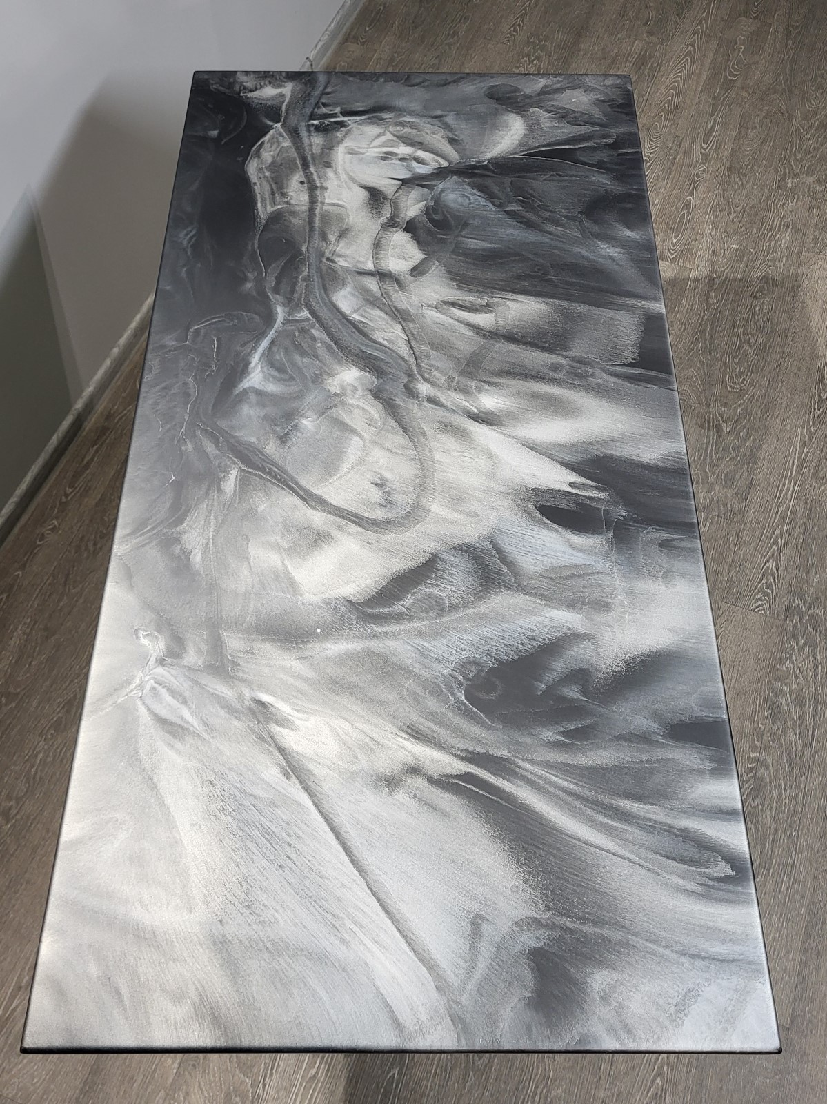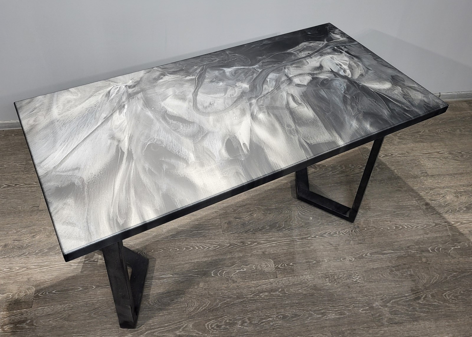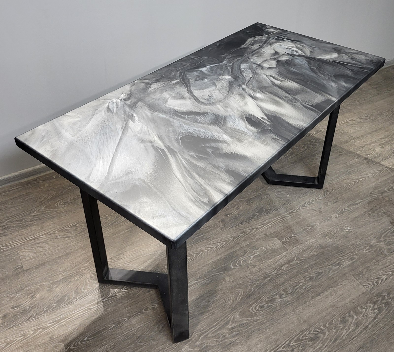 Стильний стіл, який виглядає як витвір сучасного мистецтва. Ми використали надійну основу з ДСП та перетворили її на унікальну дизайнерську річ за допомогою багатошарової заливки епоксидною смолою. Малюнок створюється вручну майстром, тому кожна деталь — неповторна. Технологія та переваги: Авторський дизайн: Ручний розпис епоксидною смолою, що створює глибину та складні візерунки. Захисне покриття: Зверху виріб вкритий додатковим прозорим шаром смоли та фінішним матовим лаком. Це робить поверхню стійкою до подряпин та приємною на дотик. Практичність: Основа з ДСП дозволяє зробити стіл доступним за ціною, зберігаючи при цьому візуальну розкіш дорогих матеріалів. Характеристики: Покриття: Епоксидна смола + захисний лак. Основа: Плита ДСП. Опори: Металеві ніжки в стилі Loft. Розмір: 140*70, Висота 75см. Ідеальний вибір для тих, хто шукає ексклюзив за розумні гроші. Зроблено з душею в майстерні «СМОЛЯРНЯ».